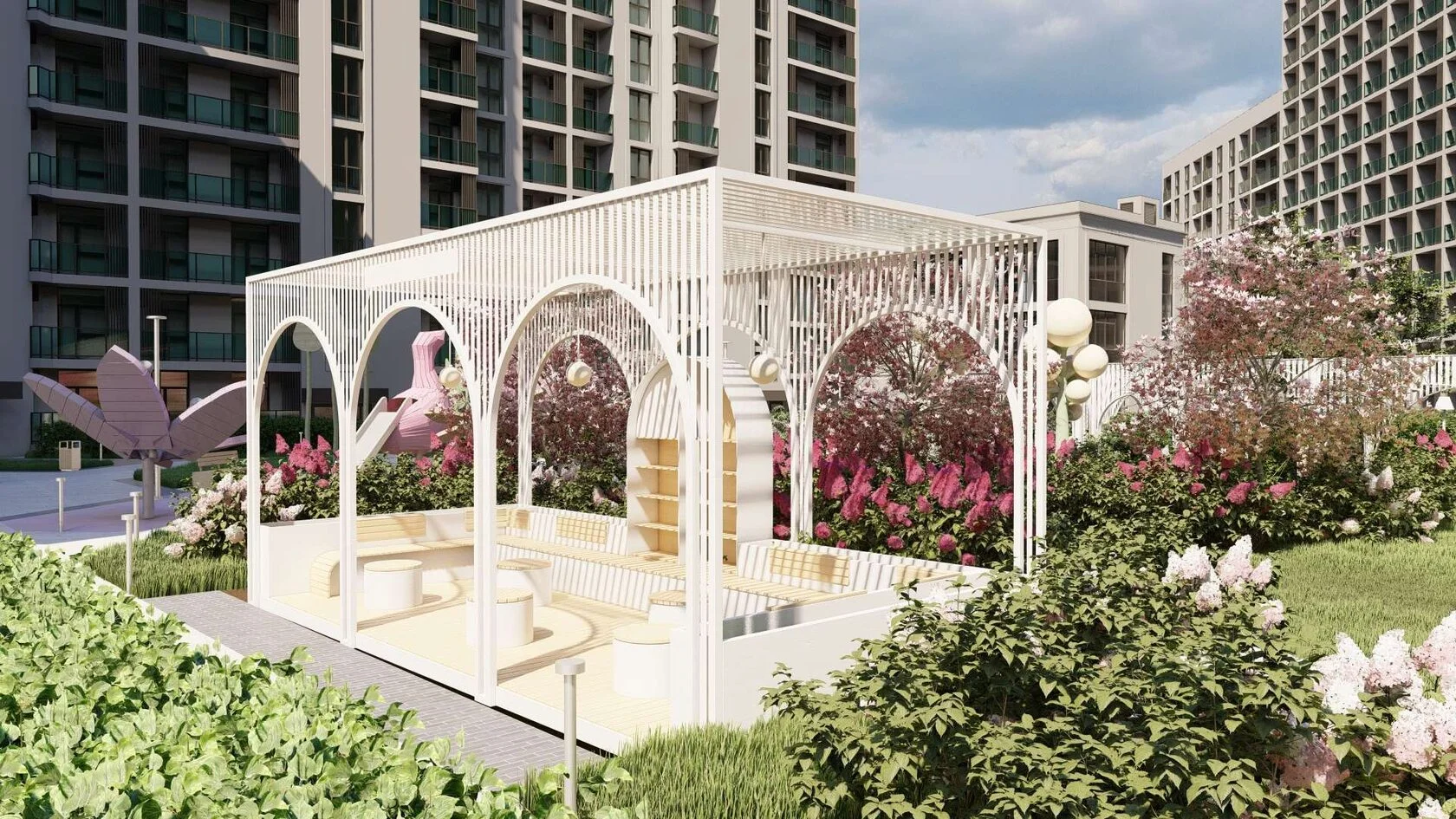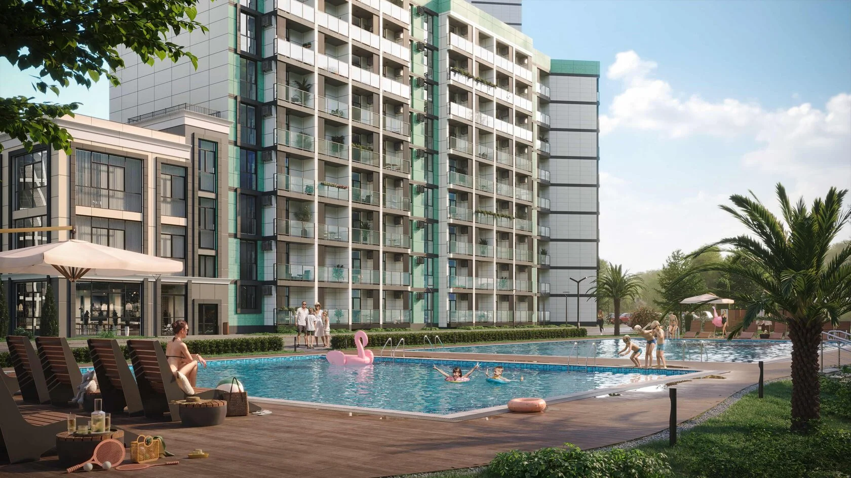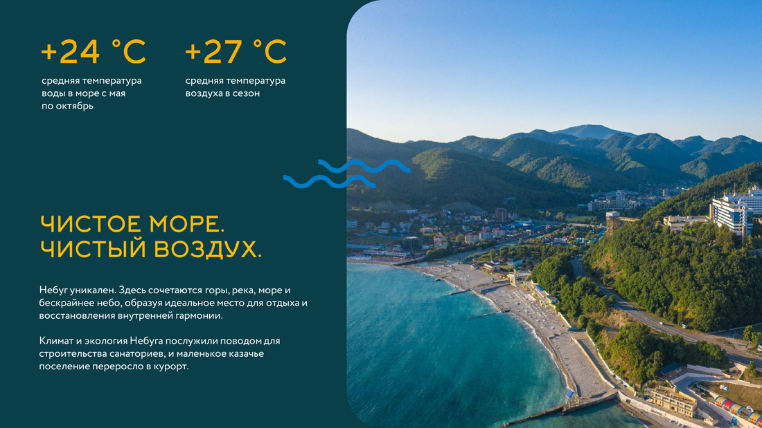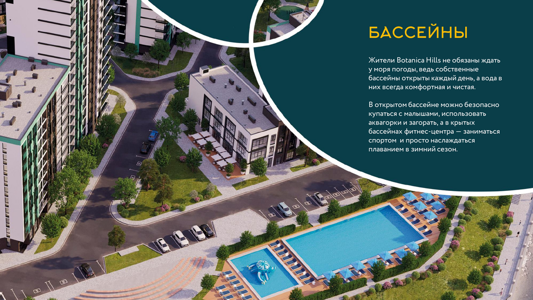 Жилой комплекс расположен в живописном месте на берегу реки Небуг, из окон открываются потрясающие виды на реку и горы. Резиденция предлагает своим жителям разнообразные удобства: открытые бассейны, спортивные и детские площадки, а также широкий спектр услуг прямо на территории комплекса, включая химчистку, аптеку, фитнес-зал, СПА-центр, продуктовые магазины и многие другие, создавая комфортную и самодостаточную среду проживания.